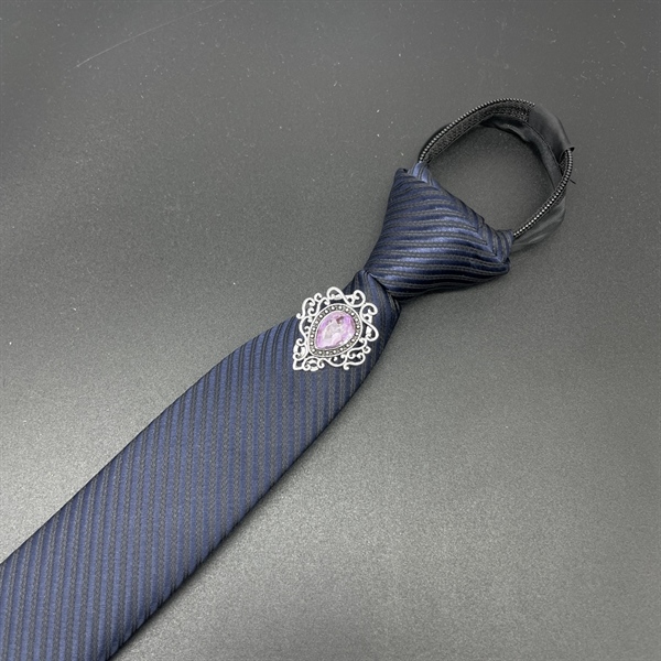 Cà vạt 6cm màu xanh đen thắt sẵn kẻ đơn giản đính đá tím hồng sang trọng
