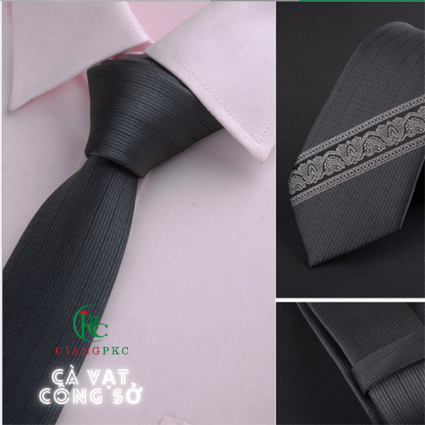 Cà vạt nam công sở tự thắt in hoạ tiết 6cm Giangpkc - Xám Đậm