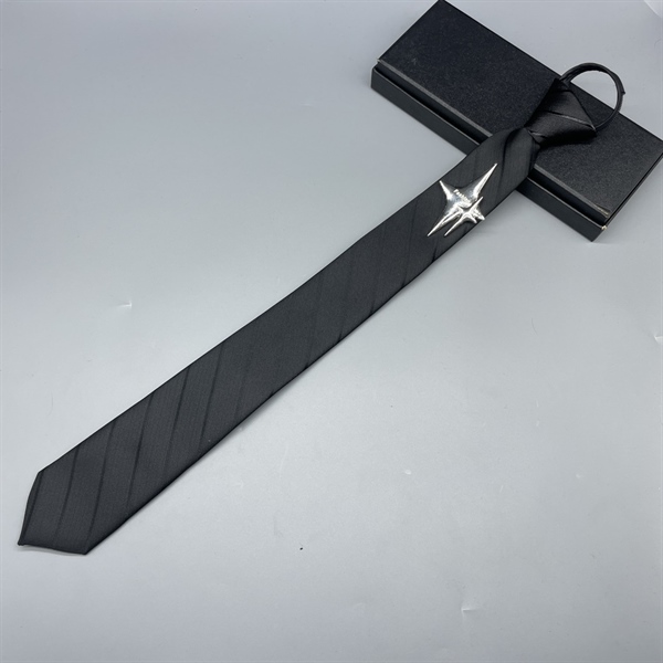 Cà vạt nam màu đen thắt sẵn mẫu kẻ nổi đính sao ánh sáng