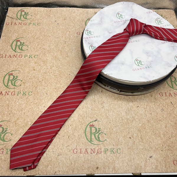 Cà vạt nam màu đỏ kẻ sọc trắng đen mẫu tự thắt 6cm mới t4/2023 Giangpkc