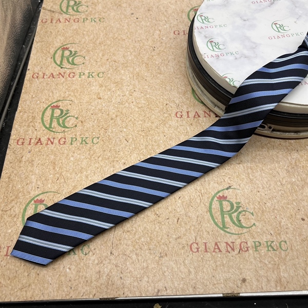 Cà vạt nam màu xanh đậm kẻ sọc trắng mẫu tự thắt 6cm mới t4/2023 Giangpkc