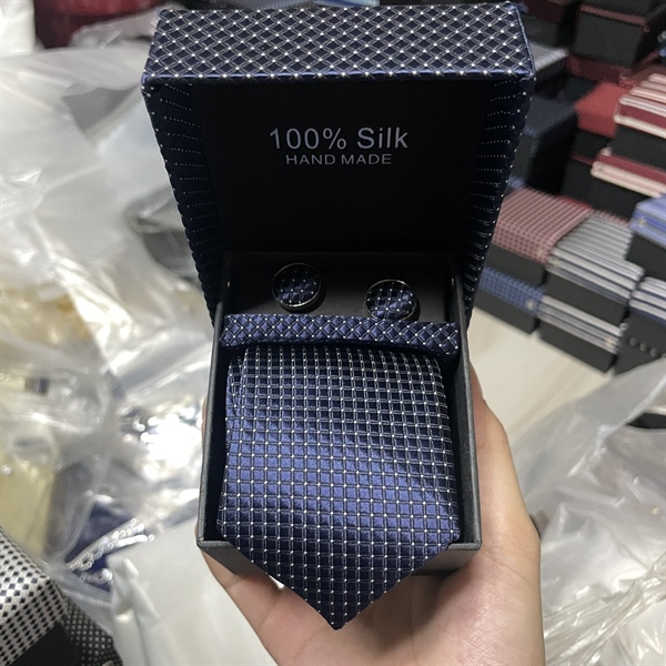 Cà vạt nam màu xanh đen chấm bi nhỏ kèm hộp bản nhỏ 6cm dành cho nam thanh niên set đầy đủ mẫu t11-2023 Giangpkc 011-23