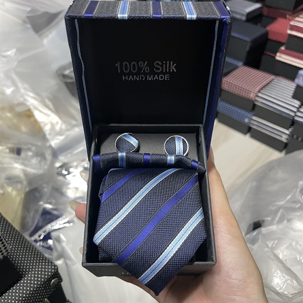 Cà vạt nam màu xanh đen kẻ kèm hộp bản nhỏ 6cm dành cho nam thanh niên set đầy đủ mẫu t11-2023 Giangpkc 011-14