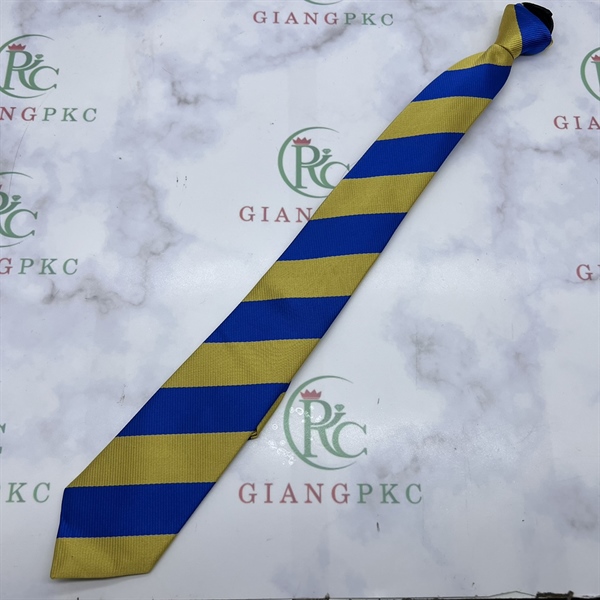Cà vạt nam màu xanh kẻ vàng lớn mẫu thắt sẵn dây kéo tiện lợi t6/2023