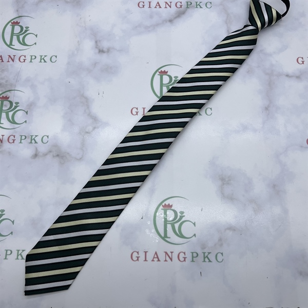 Cà vạt nam màu xanh lá kẻ vàng mẫu thắt sẵn dây kéo tiện lợi t6/2023