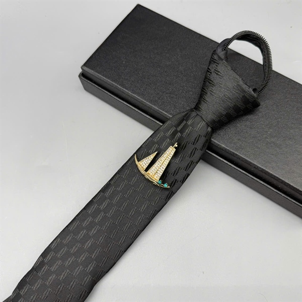 CÀ VẠT NAM THẮT SẴN DÂY KÉO 6CM – ĐÍNH PHỤ KIỆN CAO CẤP MÀU ĐEN