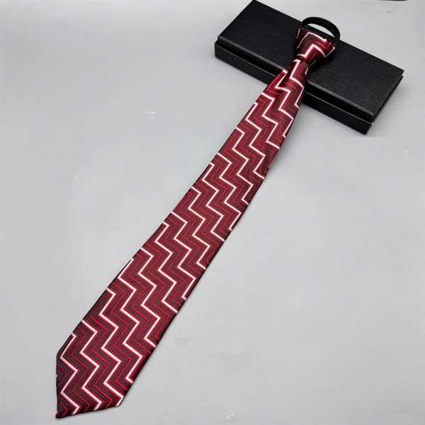 Cà vạt 8cm mẫu dây kéo thắt sẵn màu đỏ kẻ