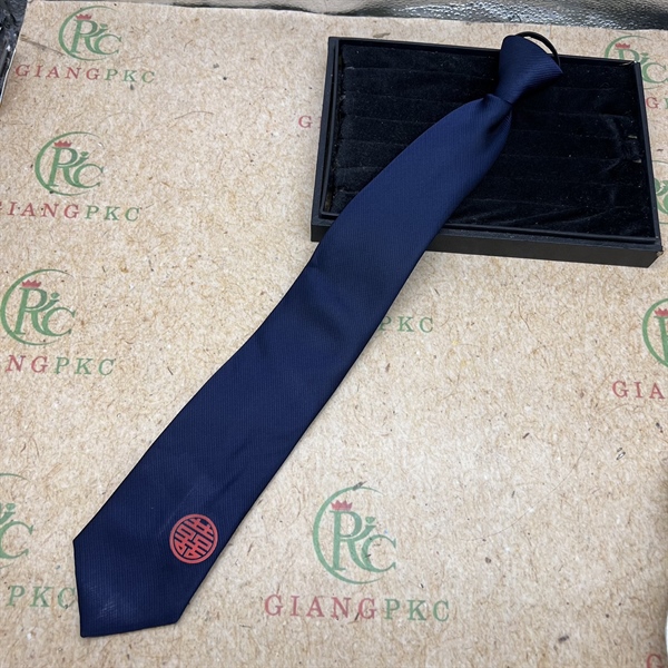 Cà vạt chú rể màu xanh đen trơn song Hỷ đỏ tròn mẫu 8cm dây kéo thắt sẵn màu xanh đen kẻ tăm