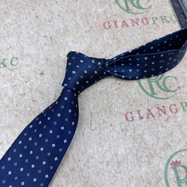 Cà vạt nam 8cm mẫu tự thắt mới t3/2024 màu xanh chấm thoi trắng