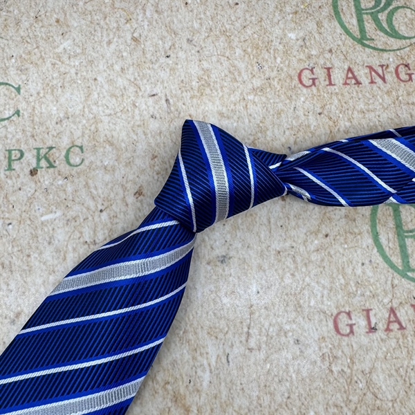 Cà vạt nam 8cm mẫu tự thắt mới t3/2024 màu xanh kẻ trắng lớn nhỏ