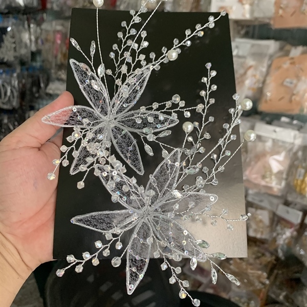 Bộ đôi hoa vàng lưới đính tua rua hạt pha lê xinh 2021 màu trắng