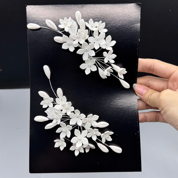 Cài tóc cô dâu chùm hoa nhí đất sét trắng mẫu mới