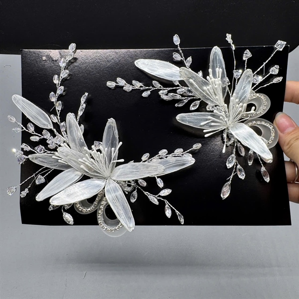 Cài tóc cô dâu hoa ánh nhũ bạc đính hạt đá mới