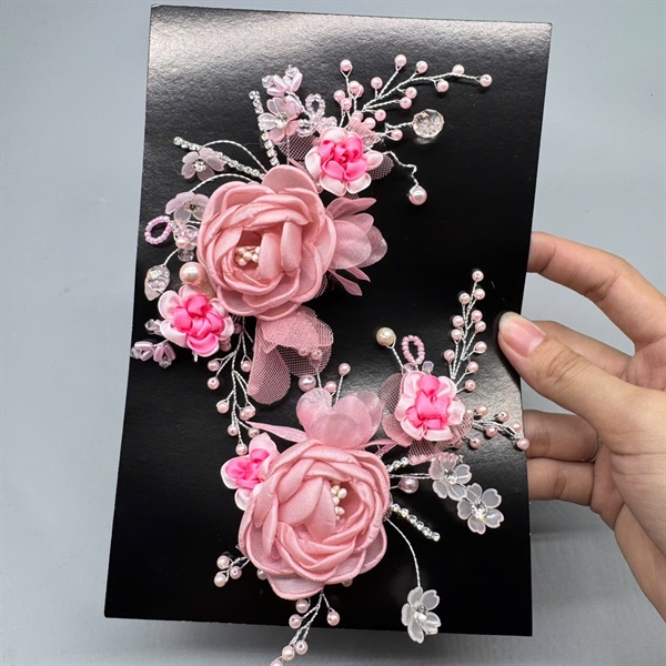 ✨ Với chiếc cài tóc màu hồng dâu đính hoa nhí và hạt trai nhỏ, nàng sẽ luôn tự tin tỏa sáng, vừa ngọt ngào vừa kiêu sa trong ngày hạnh phúc.