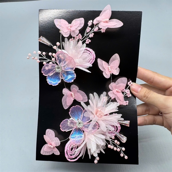 💐 Trong ngày cưới, một chiếc cài tóc tinh tế sẽ giúp cô dâu thêm phần rạng rỡ và duyên dáng. Mẫu cài tóc hoa màu hồng đính hồ điệp nhỏ mang lại vẻ đẹp ngọt ngào, nữ tính và đầy cuốn hút cho nàng dâu.