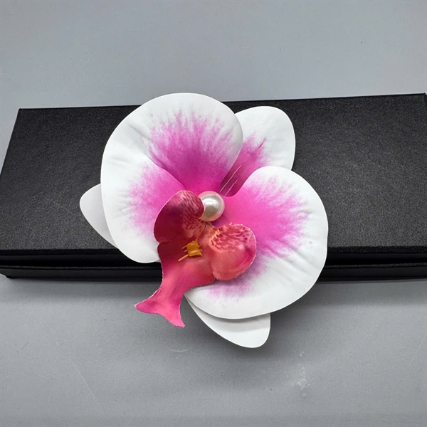 Cài tóc hoa lan chất su mềm – phối hạt trai thanh thoát