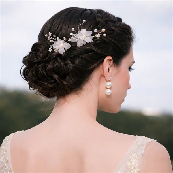 ✨ TRÂM CÀI TÓC CÔ DÂU HOA VOAN MỀM – MẪU TRẮNG NHỎ (SET 2 CÂY) ✨