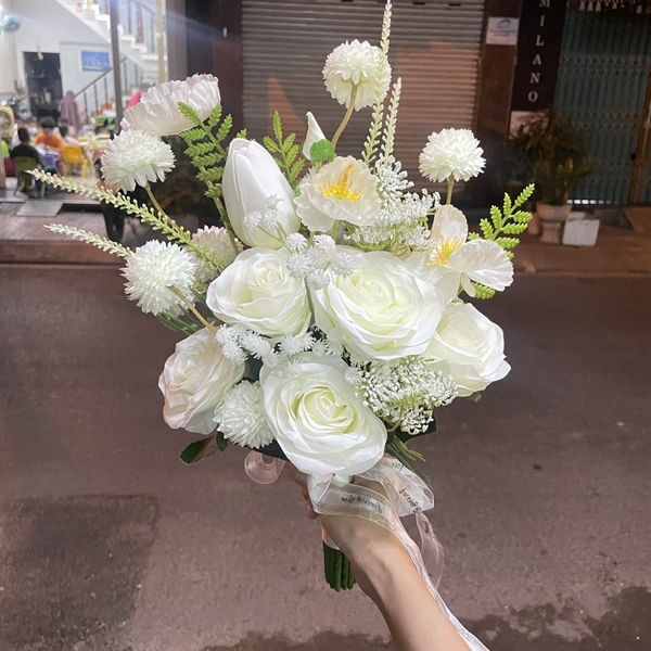 Hoa cầm tay cô dâu hồng trắng mix mẫu mới t4/2024