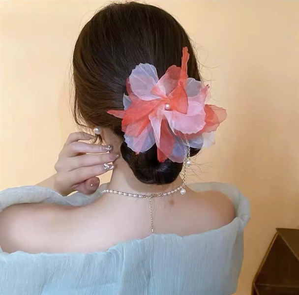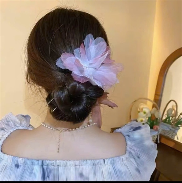Trâm cài tóc hoa voan nhẹ nhàng tone màu hồng nhạt