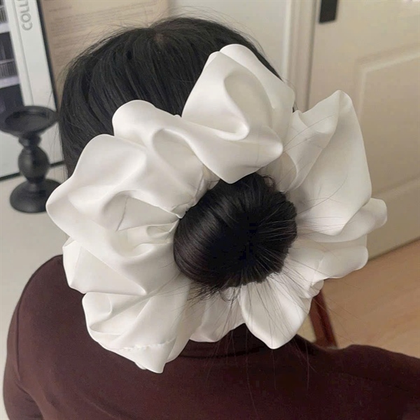 Scunchie cột tóc màu trắng phồng to dễ thương