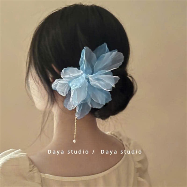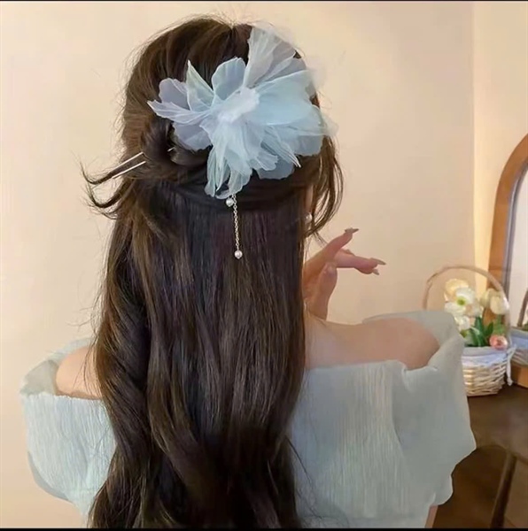 Trâm cài tóc hoa voan nhẹ nhàng tone màu xanh trời