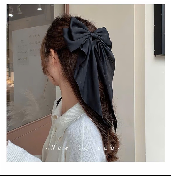Nơ cài tóc voan đuôi dài màu đen mẫu kẹp bấm (dài 35cm rộng 21cm)