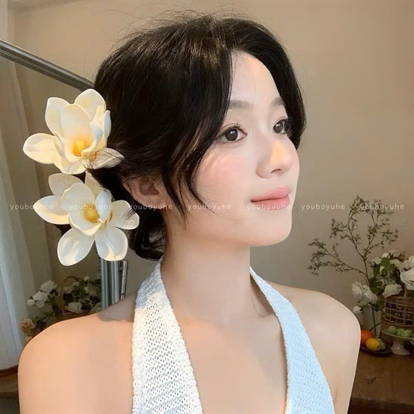 Cài tóc hoa mộc lan màu trắng kem có sẵn kẹp cài ( 1 bông )