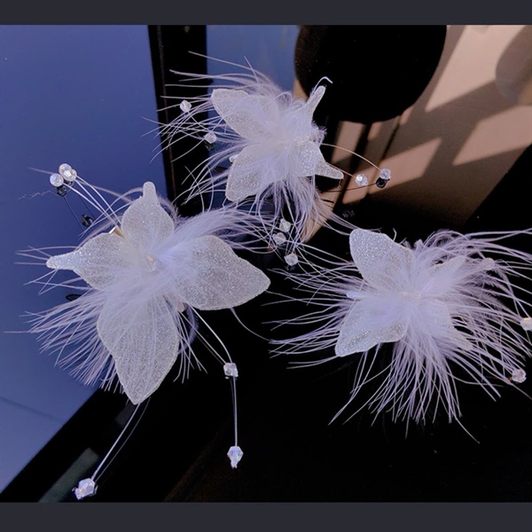 Cài tóc cô dâu hoa lông vũ trắng bồng bền có sẵn kẹp cài set 2 cái