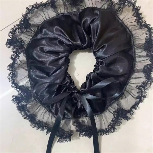 Cột tóc Scrunchie màu đen viền ren siêu lớn bồng bềnh