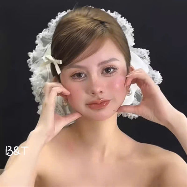 Cài tóc cô dâu lưới ren hoa mềm đuôi voan đính hoa hai bên