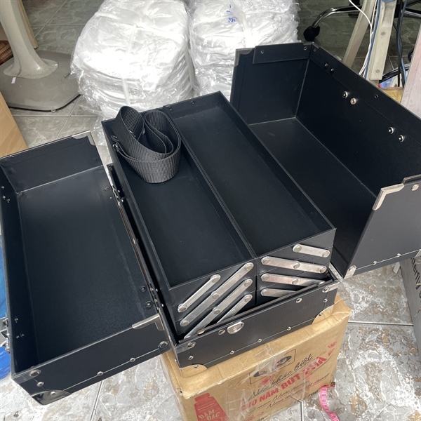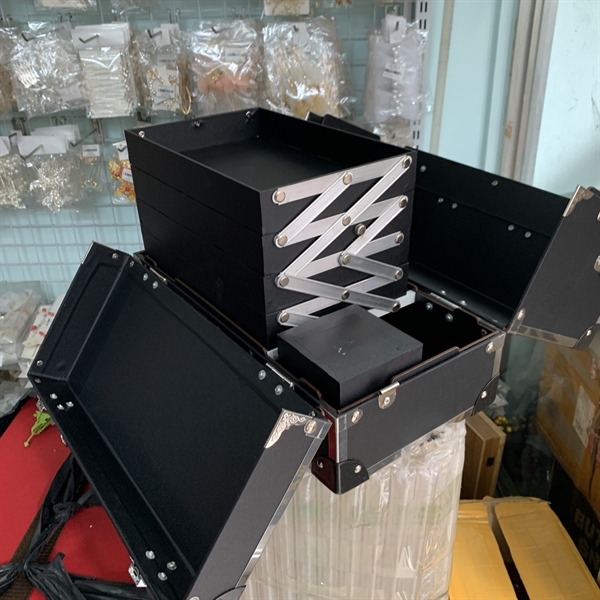 Cốp makeup 6 ngăn màu đen viền hộc dài kt 40x25x37