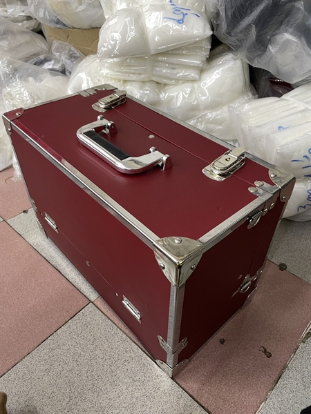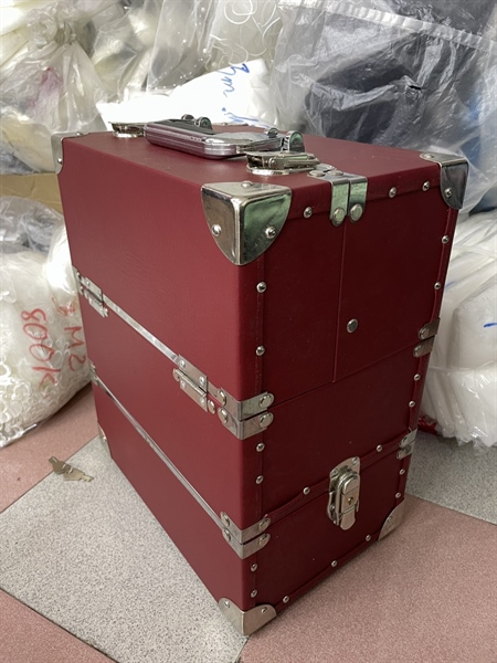 Cốp makeup 4 ngăn thanh lí màu đỏ đô viền inox Kt 40x20 cao 25, hộc 17x27