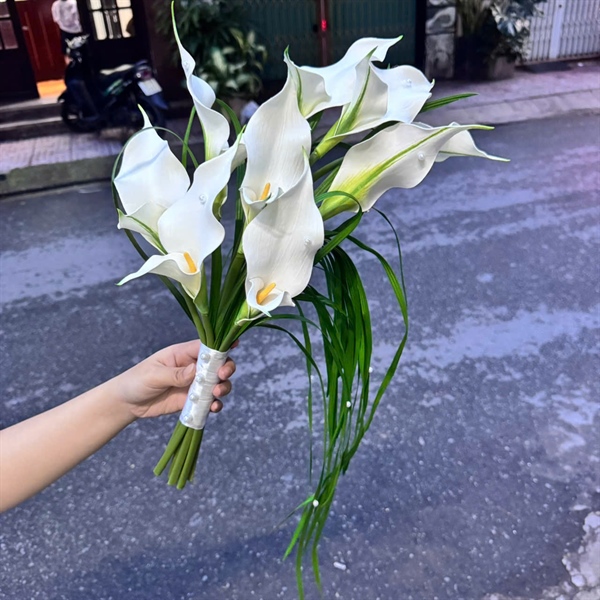 Hoa cầm tay cô dâu Callalily trắng cho cô dâu ngày cưới