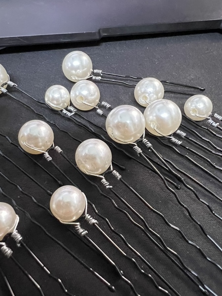 Bộ 18 trâm chữ U đính hạt trai quấn kẽm thủ công Giangpkc