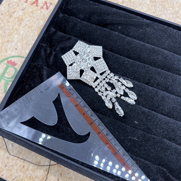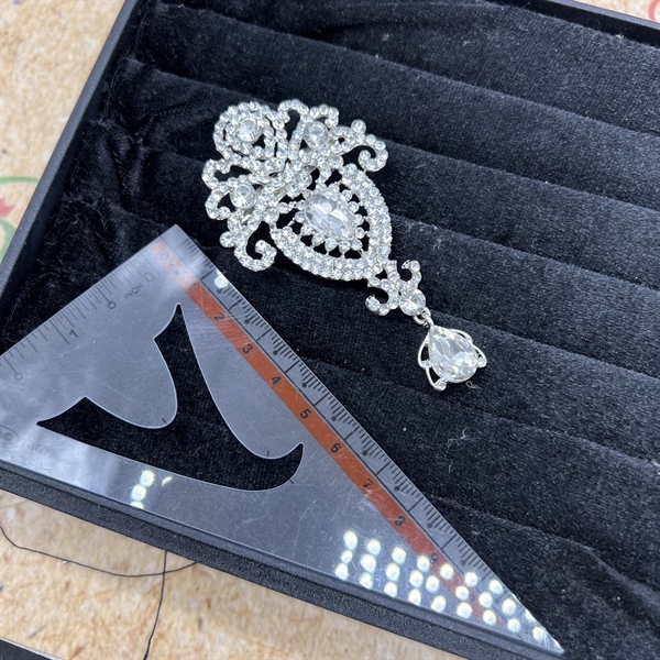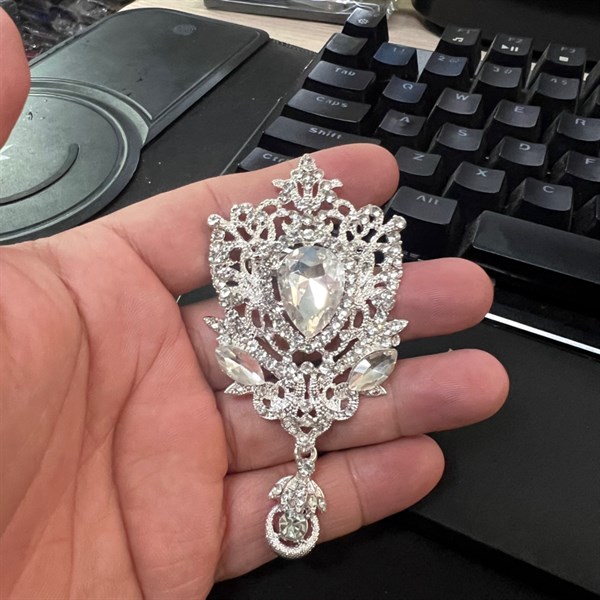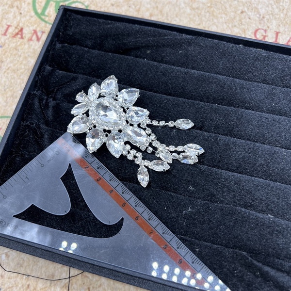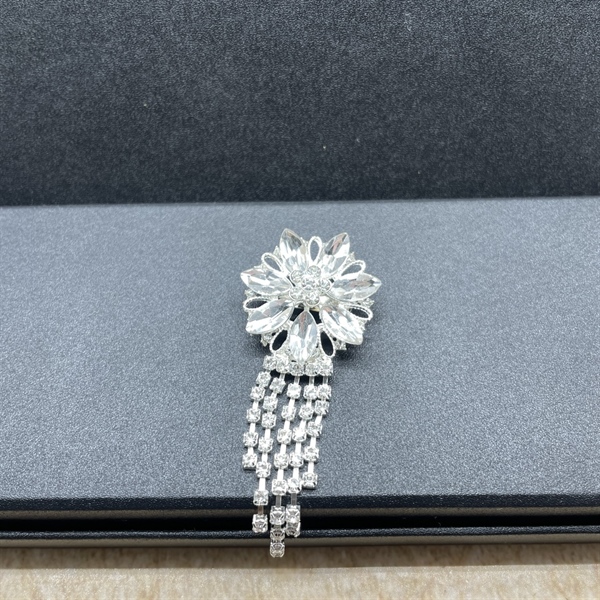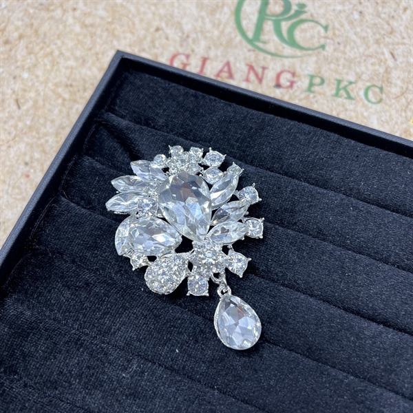 Ghim cài áo nữ hoa đá đuôi dài mẫu mới đá trắng t12/2023