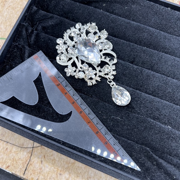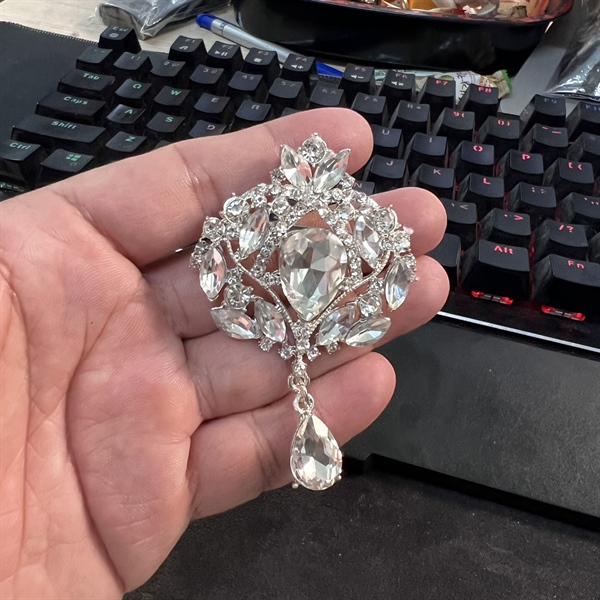 Ghim cài áo nữ đá giọt nước đuôi tròn mẫu mới đá trắng t12/2023