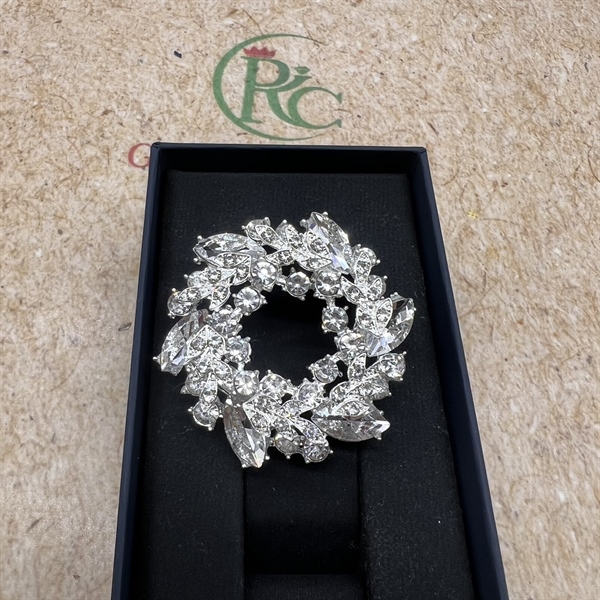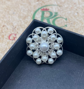 Ghim cào áo nữ tròn hoa lá đá màu trắng