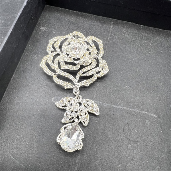 Ghim cài áo nữ mẫu hoa hồng lớn đuôi đá trắng đẹp mẫu mới
