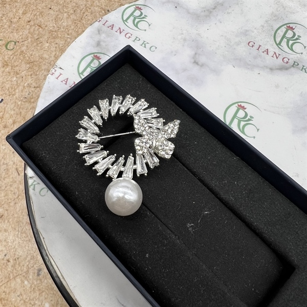 Ghim cài áo nữ tròn đính hạt trai bướm đá trắng mẫu mới t12/2023