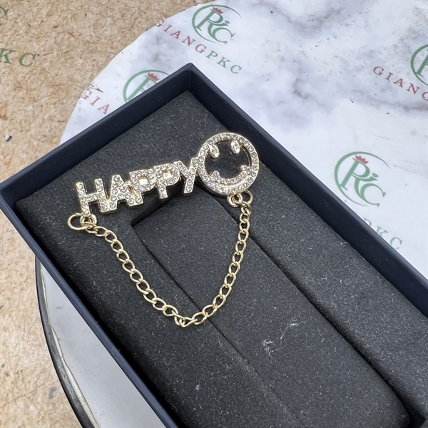 Ghim cài áo nữ chữ happy vàng