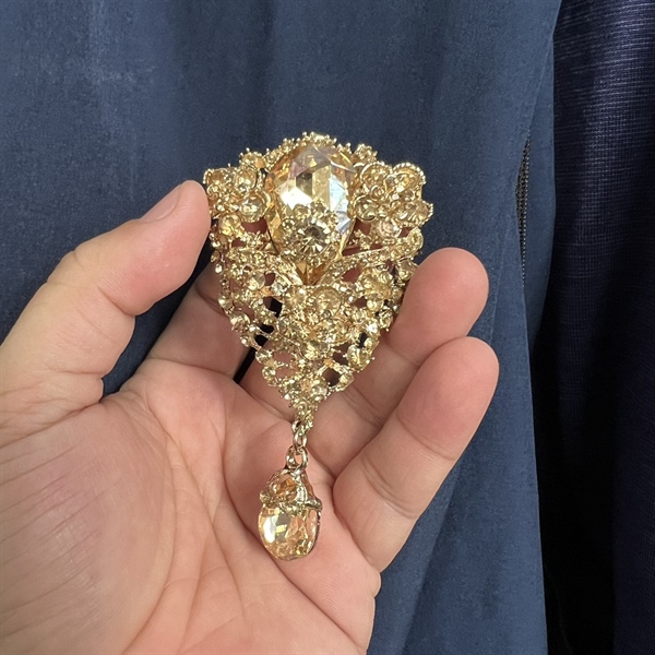 Ghim cài áo đá vàng trà sang trọng đuôi đá tròn mẫu mới t1/2024