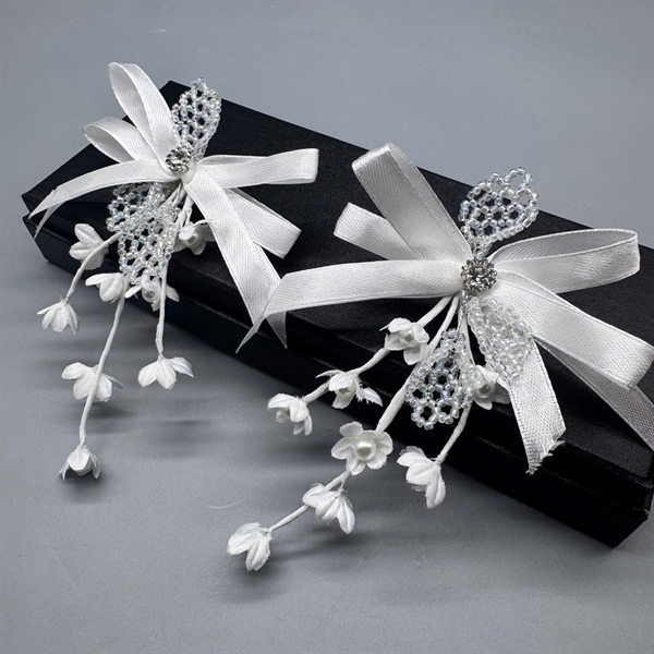 Bông tai cô dâu nơ ruy băng đính hạt cườm hoa linh lan nhỏ