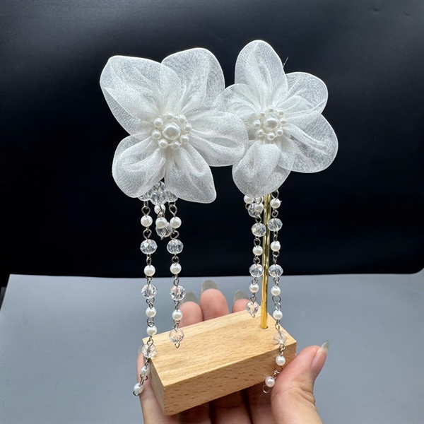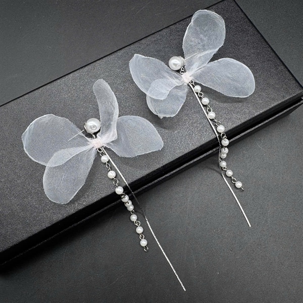 Bông tai hạt trai cánh hoa voan mix dây đá tua rua lấp lánh nhẹ nhàng