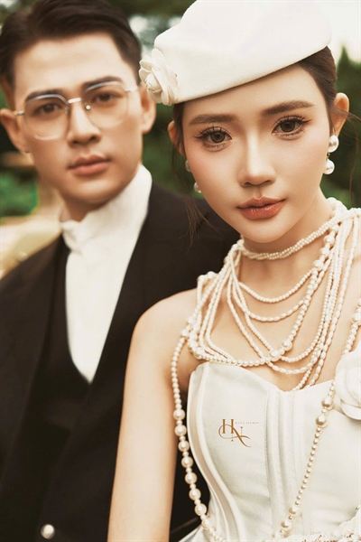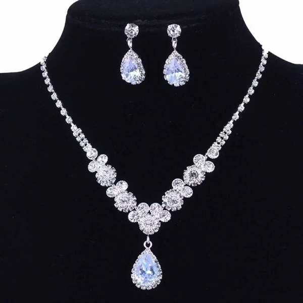 Trang sức bộ cô dâu mẫu mới màu trắng dây cổ kèm hoa tai đá to Giangpkc T8-2025