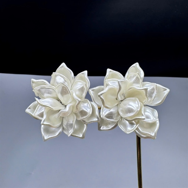 Bông tai hoa mộc lan nhiều cánh xếp màu trắng ngà cổ điển