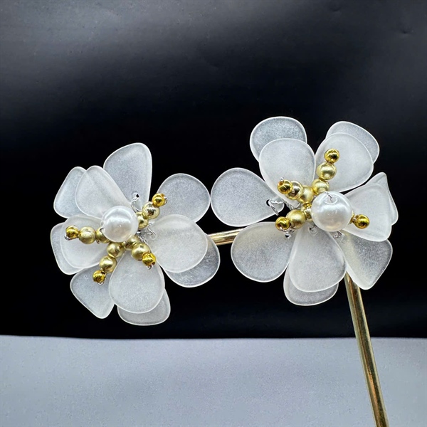Bông tai hoa màu trắng hạt trai cho cô dâu mẫu xỏ khuyên t82025