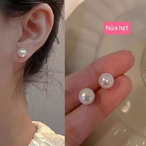 Bông tai hạt trai mẫu nửa hạt tròn nhỏ xỏ khuyên 10mm