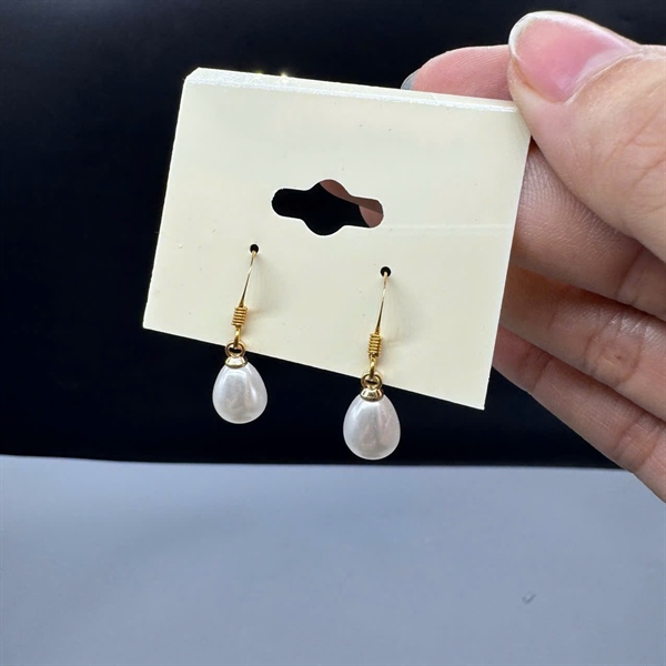 Bông tai hạt trai mẫu giọt nước nhỏ xỏ khuyên móc màu vàng 8mm
