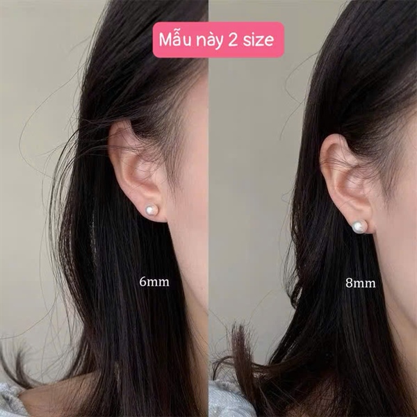 Bông tai hạt trai mẫu hạt tròn lớn nhỏ xỏ khuyên 8mm + 10mm