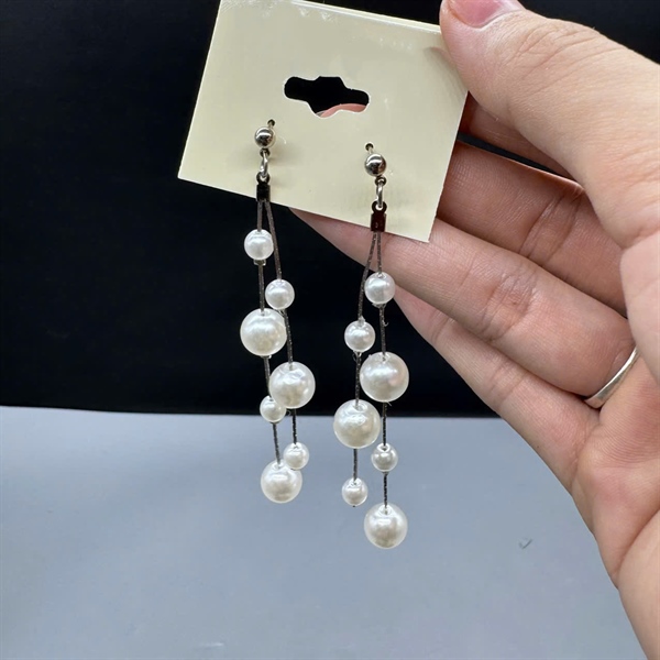 Bông tai hạt trai mẫu hạt tròn lớn nhỏ dây tua rua xỏ khuyên